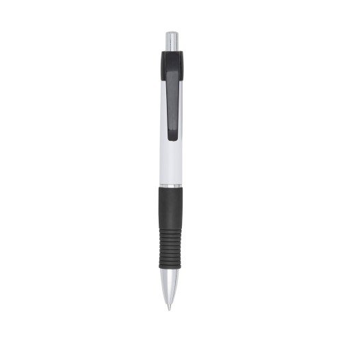 Descrição:  Caneta plástica com detalhe emborrachado, carga esferográfica azul e acionamento por clique.