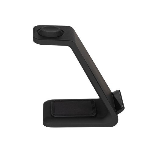Descrição: Base de carregamento 3 em 1 via indução. Capaz de carregar simultaneamente celular, Iwatch e fones de ouvido através da tecnologia de indução QI, a base contém frestas para auxilio da circulação de ar, acelerando o resfriamento e proporcionando uma dissipação de calor ideal ao produto. Acompanha cabo USB tipo C.